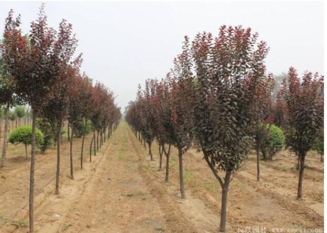 按照此法管理,通過大枝扦插成活的紅葉李,經過一年的管理,可培育出地徑1.5~2CM且株形豐滿的新植株。