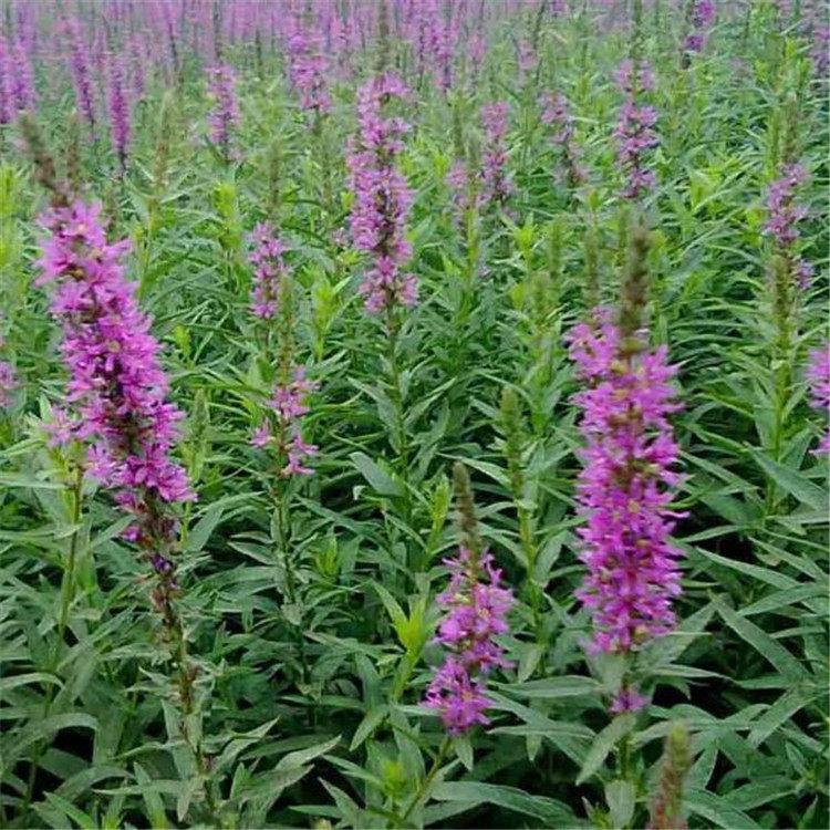 千屈菜又叫水枝柳、水柳、對葉蓮等,多年水生宿根草本植物,植株高約1米,直立生長,主桿上有許多分枝,葉子對生,披針形。葉子長4~6cm,寬1cm左右。總狀花絮長在最上面,長約30cm,花朵簇生。喜歡溫暖濕潤陽光充足的環境,在我國南方和北方地區都有野生的,生長在沼澤、湖畔、池塘等淺水地區。它耐寒性強,在山東、河南、北京等地均可自然越冬,霜降以后地面部分枯死,地下部分進入泥土休眠,在淺水的河邊和低洼潮濕的地方生長態勢最好,對土壤的要求不嚴。千屈菜的生命力極強,管理也可粗放,栽培的環境只要保證光照充足、通風良好即可,在生長期要經常打頂促使其矮化分蘗,長出豐滿茂密的株型。